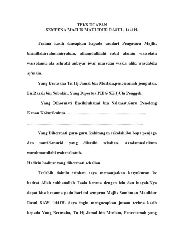 Teks Ucapan Majlis Maulidur Rasul Pdf